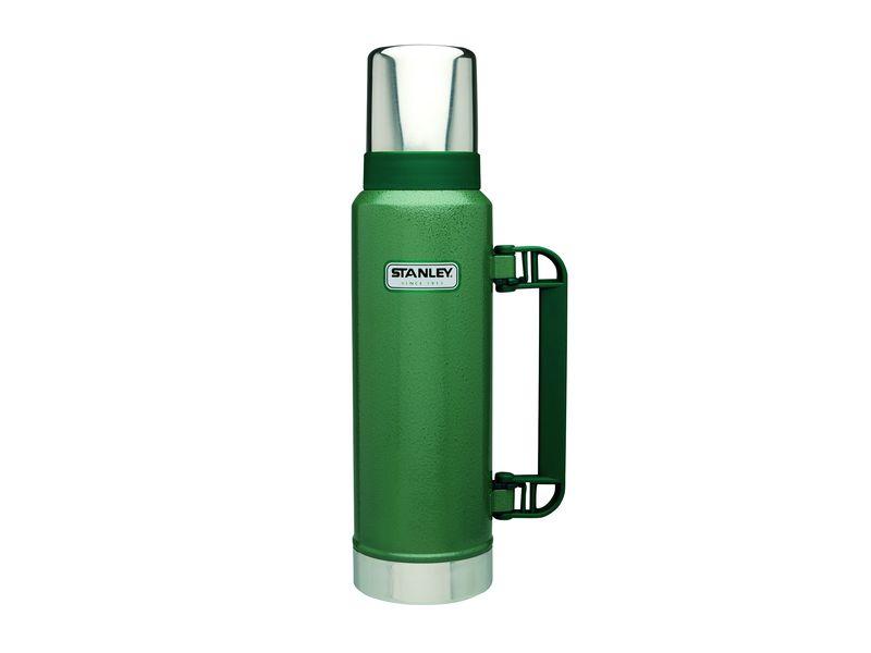 Diese doppelwandige Stanley Classic Vakuum-Flasche hat ein Fassungsvermögen von1,3 Liter und hält Getränke bis zu 24 Stunden heiß oder kalt. Die aus rostfreiem18/8 Edelstahl gefertigte Vakuum-Flasche überzeugt mit einem ansprechendenDesign in Hammertone Grün. Der seitlich montierte Kunststofftragegriff sorgt füreinen problemlosen Transport. Über dem Flaschenverschluss sitzt ein Trinkbecher,der ebenfalls isolierend ausgelegt ist. BPA-Frei!
